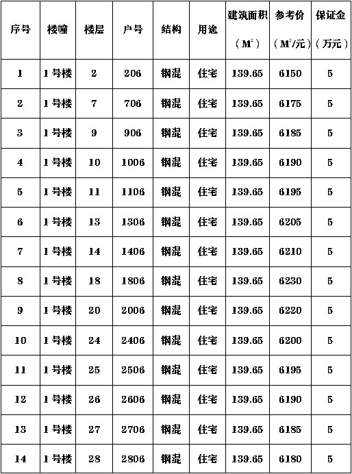 一、拍賣標(biāo)的:坐落于瀘州市江陽區(qū)華陽街道學(xué)院西路372號“佳興茗苑”小區(qū)住房。(詳見房屋清單)
